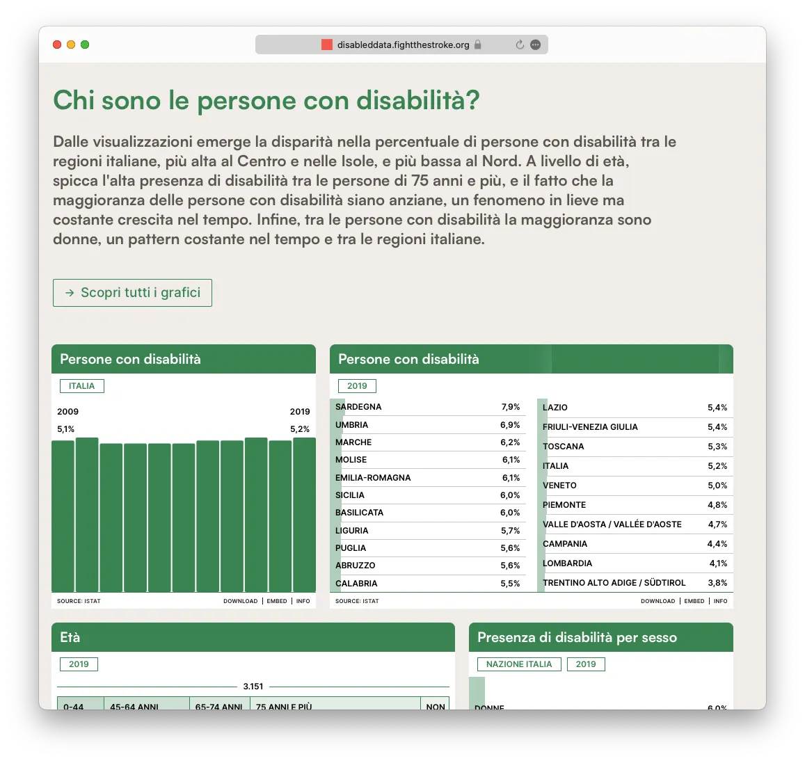 Each data if finally visible, easy to understand, and intuitive to download. In a few clicks, the data visualizations can also be downloaded, or shared on one's own platforms. Disabled Data is a new tool at disposal to support the work of journalist, policy makers, social worker, but also media producers and creators, to populate the internet with meaningful and informed content.